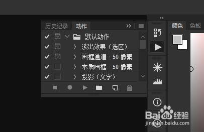 4、把处理好的图片在PS中打开,准备录制动作。打开PS菜单栏里的“窗口”找到“动作”勾选动作面板显示在右侧和历史记录面板在一块。