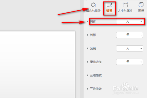 我们选择效果选项,在阴影选项中选择需要的阴影即可。
