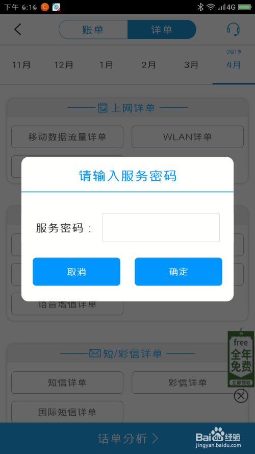 页面跳转,输入你的服务密码,点击确定,这时就可以看到每个月哪些项目是乱扣费的。