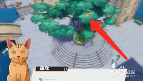 第三步:最后在花坛的树底下找到猫咪,即可完成任务。