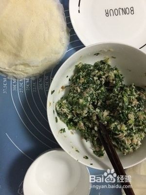 切碎的菠菜,肉,适量的盐和油一起搅拌均匀。