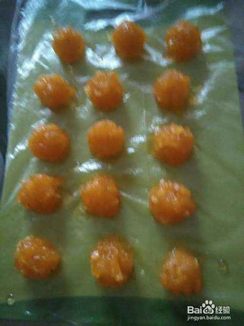 凤梨馅料拿出来后分成15克一个每等份,再放冰箱冷藏10分钟