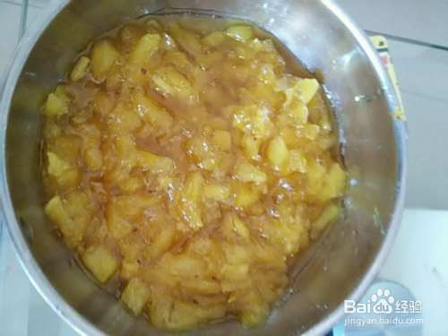 一直煮到凤梨变成透明状的,胶质粘稠,煮干些好,这是后面就突显的问题,现在总结下