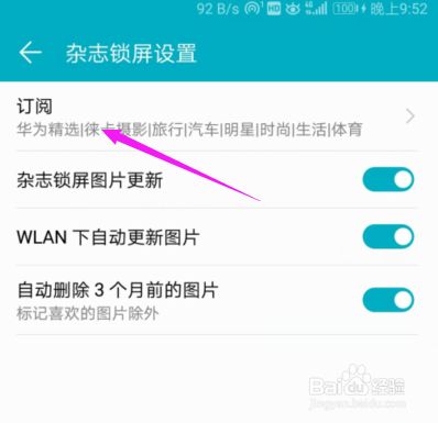 【杂志锁屏】主页里,单击开【订阅】下,如图。