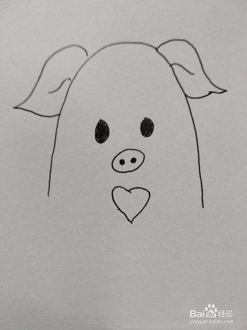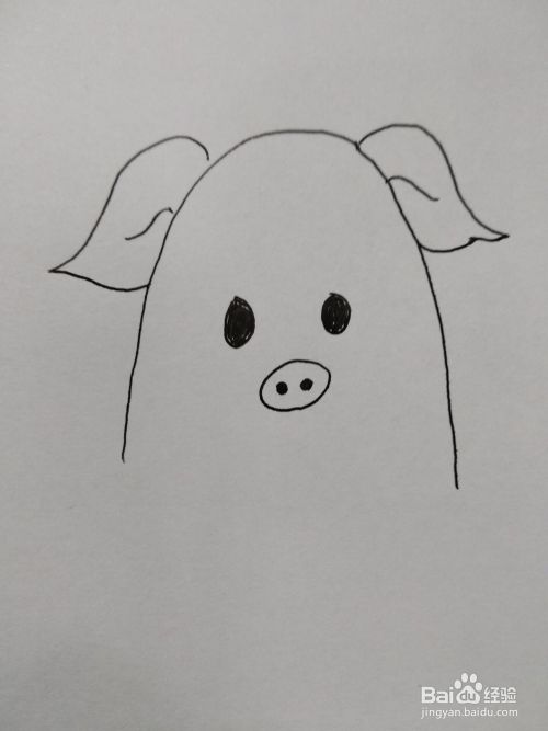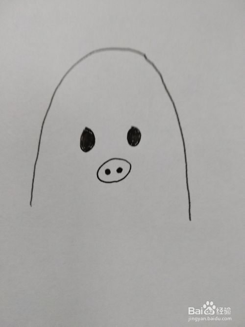 然后画出小猪猪黑黑的眼睛和有两个小洞洞的鼻子。