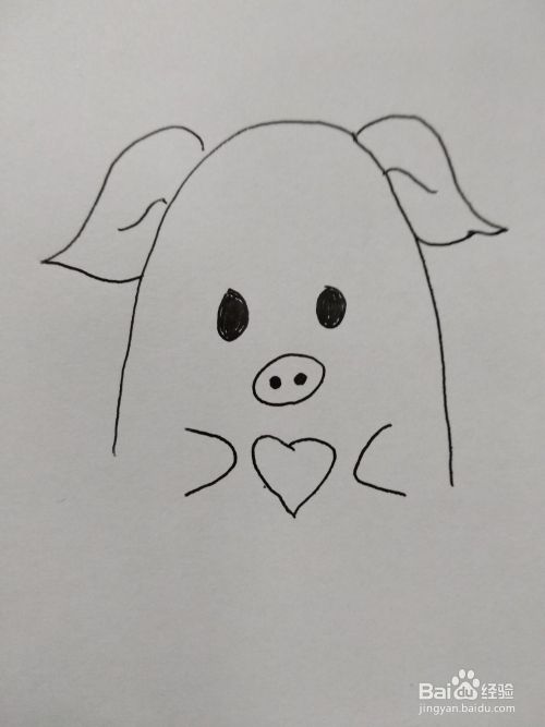 接着在爱心的左右两边各画出小猪猪的小手手,然后我们就看到了一只萌萌的诚实又可爱的小猪猪了。