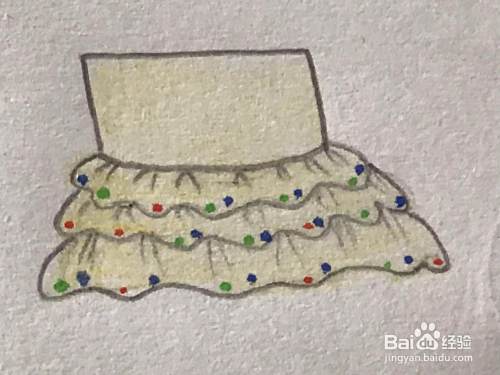 我们在裙子的边缘,选择彩色的水彩笔给他画上小珠子。