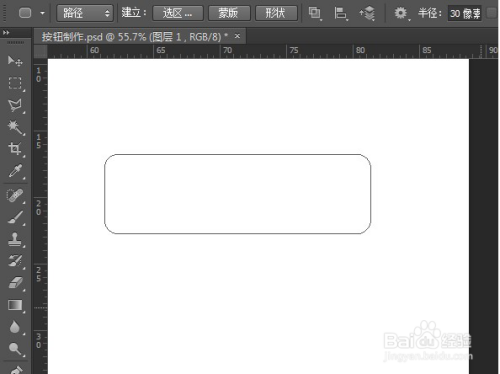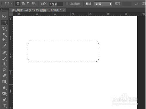 制作圆角矩形选区,创建一个新图层。点击“图层1”,确定它为当前图层,点击鼠标左键绘制固定大小的圆角矩形路径,按<Ctrl+Enter>键,将路径转为选区,如图所示。