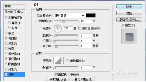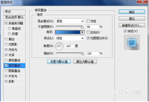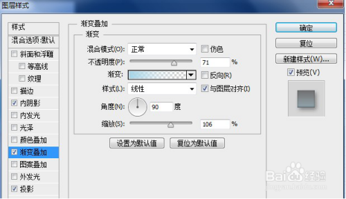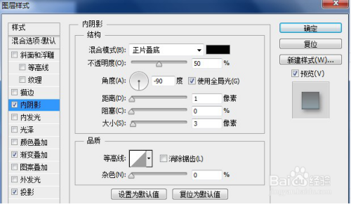 为文字添加效果,单击“文字图层”,将其置为当前层。单击图层面板中的 “添加图层样式”按钮。分别设置内阴影、渐变叠加、投影,弹出“图层样式”对话框,如图所示,进行设置。
