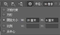 新建文件,使用“圆角矩形”工具在工具属性栏中设置参数,固定大小值为(W:20,H:6)、半径为30像素。绘制圆角矩形。