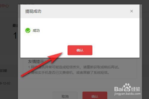 提现成功以后会提示成功。