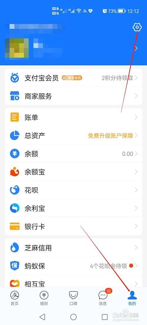 第一步、打开手机支付宝,点击我的和设置图标,如下图