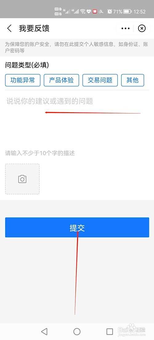 第四步、填写反馈的问题或建议,点击提交即可,如下图所示
