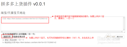 进入上货助手后,将淘宝/天猫的宝贝链接复制到框内,如需批量上传,可将宝贝链接先保棍购存在记事本内,点击【选择文件】进行上传,上败况传后文件框内“示例”处会展示所有宝贝链接。