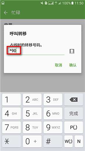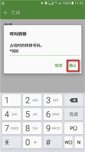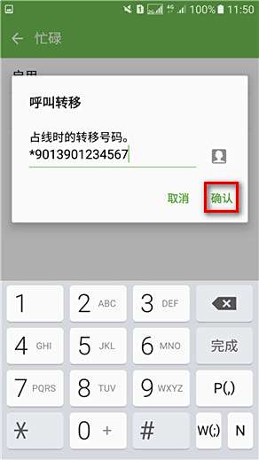 若想取消呼叫转移:请在上述第7步,点击【禁用】,然后弹出一个“呼叫转移”对话框,无需输入号码,直接点击【确认】,会自动拨打一个号码,语音提示中提示已取消即可。
