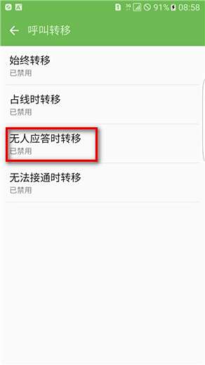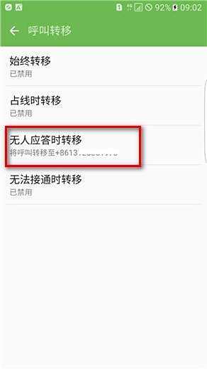 6.选择您需要的转移方式,这里以选择【无人应答时转移】为例。