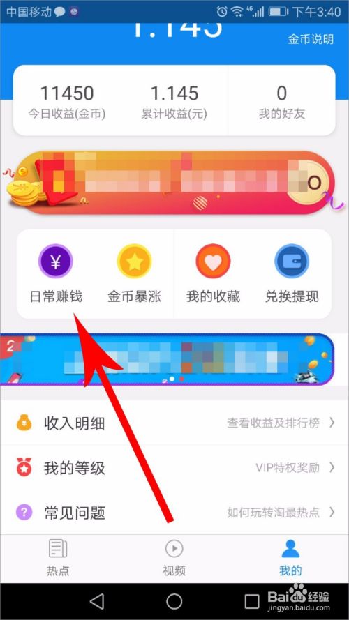 打开淘最热点个人中心后,在靠近中间的一行位置找到“日常赚钱”选项