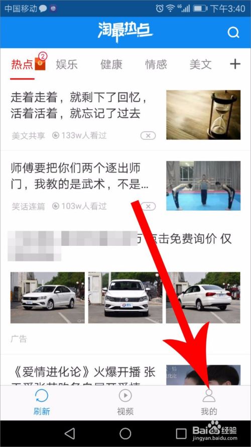 记住好友给你的邀请码后,在手机中打开淘最热点app,在首页上点击“我的”,位置在右下角顶角位置