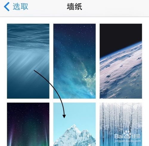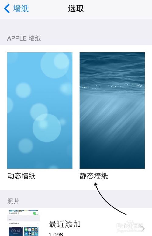随后是选择要设置的图片内容,可以选择系统自带的动态墙纸,静态墙纸,也可以选择自己所拍的照片。这里以系统自带的静态照片为例,如图所示