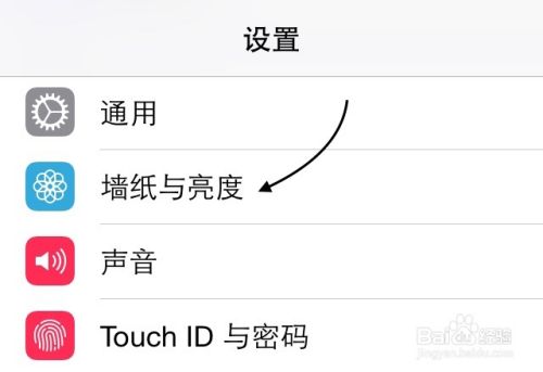 在设置列表中找到“墙纸与亮度”一栏,点击打开。