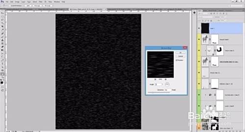 在图层顶部创建一个新图层并命名为雨。填满黑色。转到“滤镜”>“像素化”>“Mezzotint”。选择“类型”:中笔画,然后单击“确定”。现在转到滤镜>模糊>运动模糊。设置角度: 0和距离: 40像素,然后点击确定。旋转图像并将混合模式更改为屏幕。