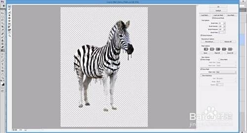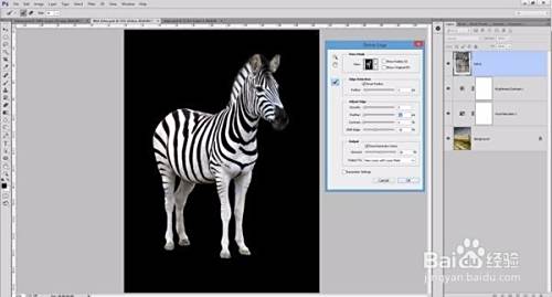 转到“选择”>“细化边”。选中“智能半径”,然后设置“半径: 2像素”、“平滑度: 5”、“羽化: 0.5像素”、“对比度: 0”和“偏移边缘: - 20”,然后单击“确定”。复制斑马纹复制图层并将其命名为斑马纹滤镜。单击图层蒙版缩略图,转到图层>图层蒙版>应用.