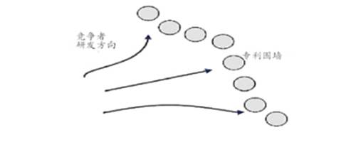 利用系列式的专利形成对竞争对手的阻碍,形成专利围墙以防止竞争者刻意回避,当不同的技术方案都可以达到类似的功能效果时可以考虑专利围墙的布局模式