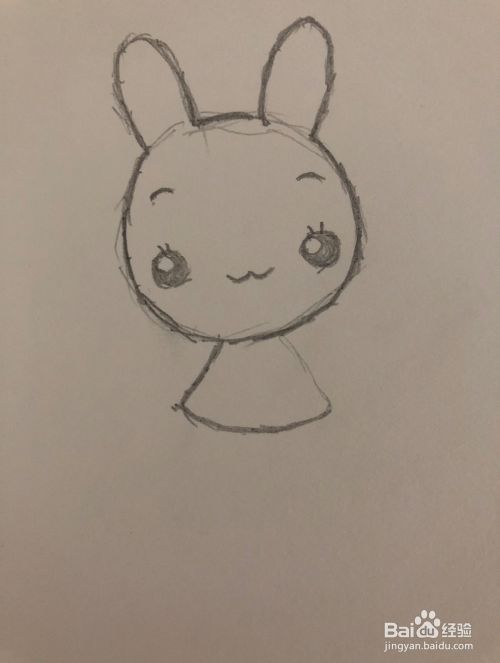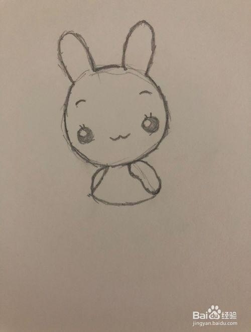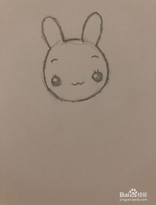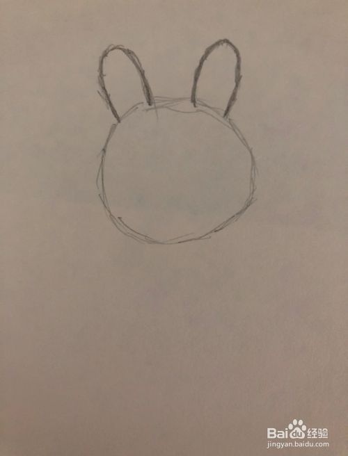 然后就在圆的上边画出小兔子的耳朵,两个长一些的椭圆形。