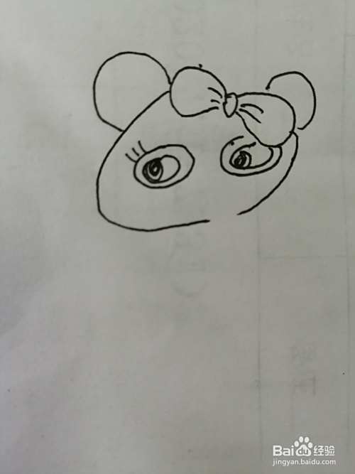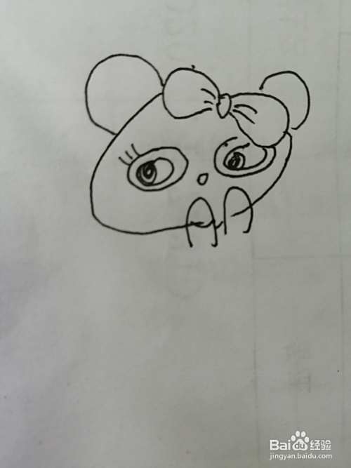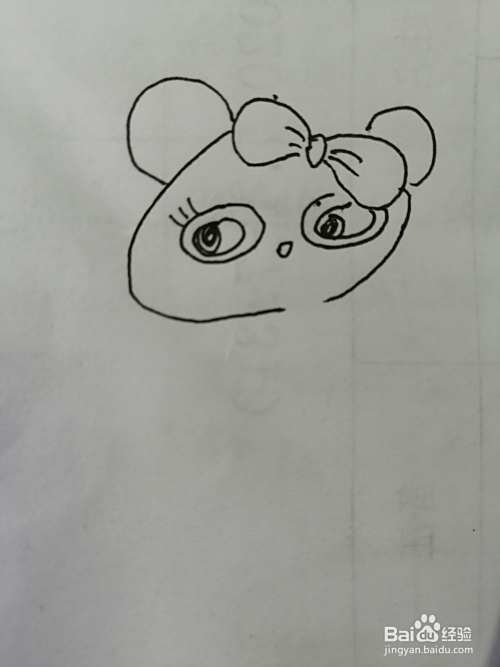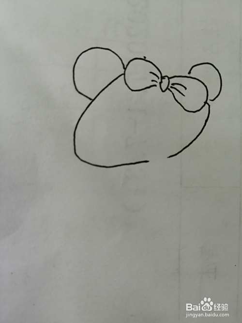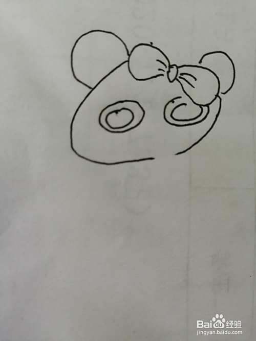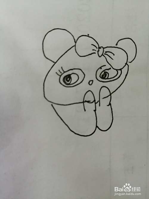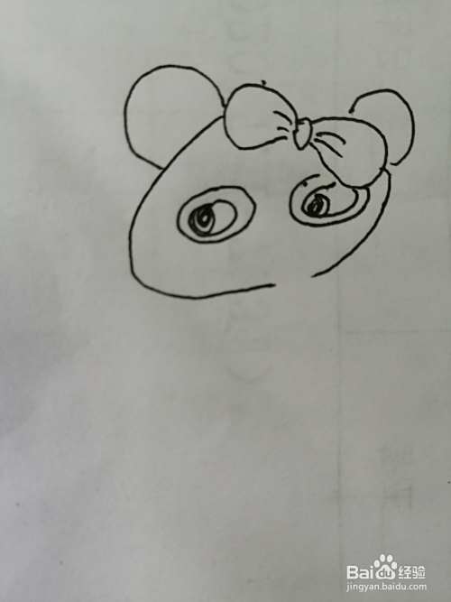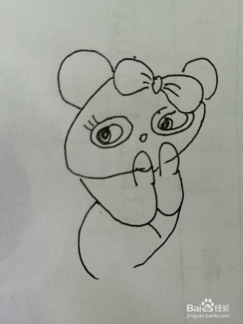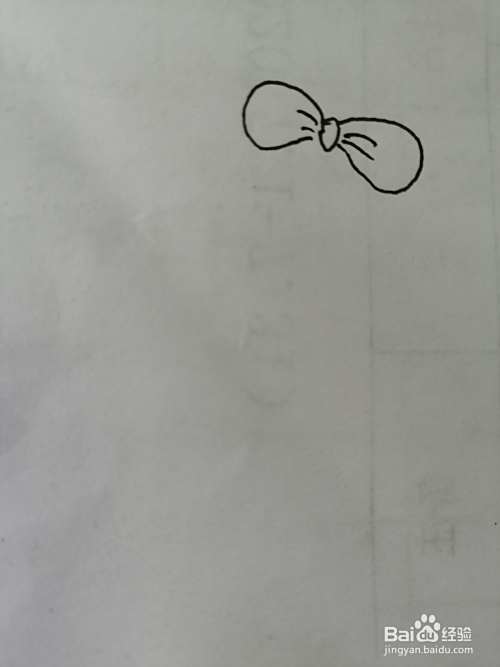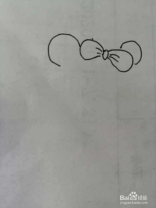 第一步,我们先把简笔画漂亮的小熊猫的漂亮的蝴蝶结画出来。