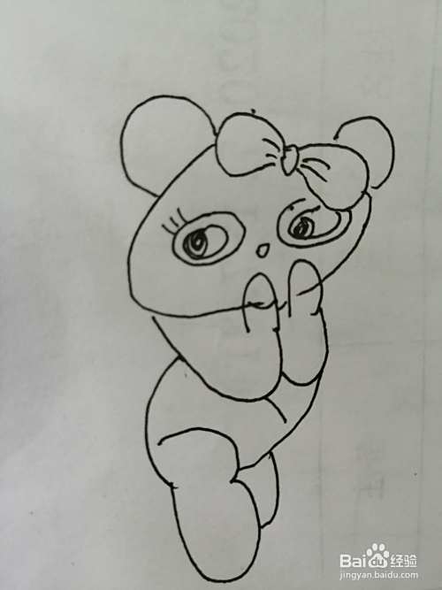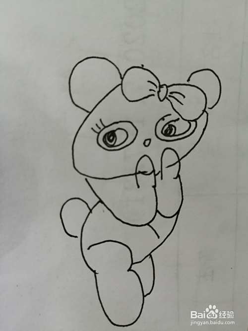 第五步,然后继续画出简笔画漂亮的小熊猫的身体部分。