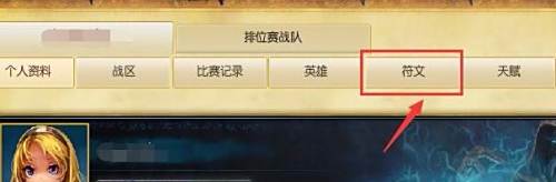 然后就可以看到你个人资料、战区、比赛记录、英雄、符文、天赋等等,如果我们要设置符文的话,我们点击【符文】