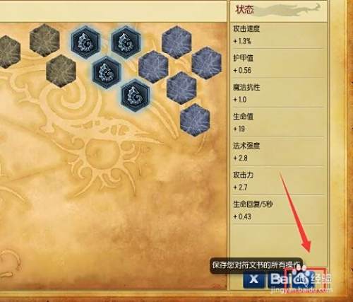 设置好符文之后,一定要注意保存,那么保存按钮在哪里呢?在 右下角,如图所示,我们点击 它保存。