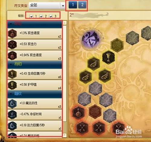 然后就在这可以看到符文的插槽,才开始插槽是没有解锁的,随着你等级的增加插槽的数量就不断的解锁,解锁后颜色要深一点,如图所示,只有解锁后我们才能把符文放进去。