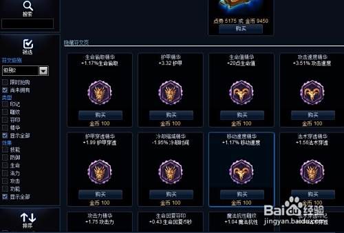 在左侧我们可以直接搜索符文,也可以根据类型效果选择,选择好之后,可以看到需要多少金币,然后点击【购买】