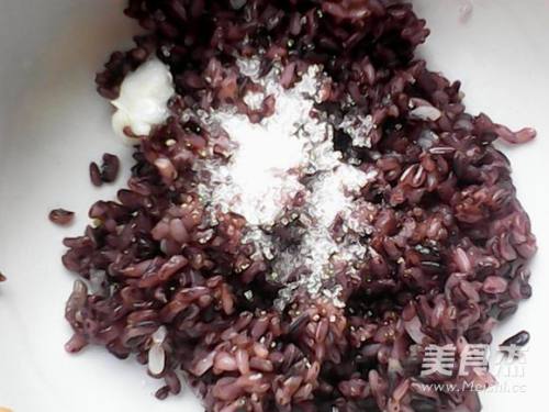 5黑糯米放猪油,白糖,盐拌匀