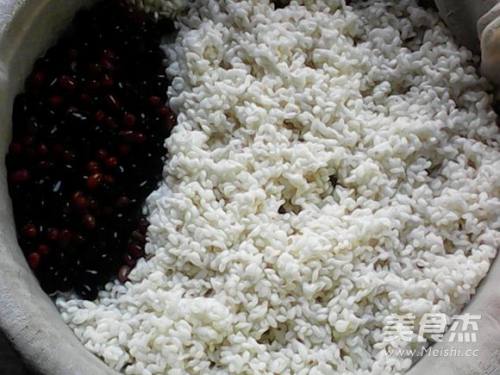 2糯米和黑豆,红豆上锅蒸熟,豆类多蒸一下,糯米中途洒水搅拌一下
