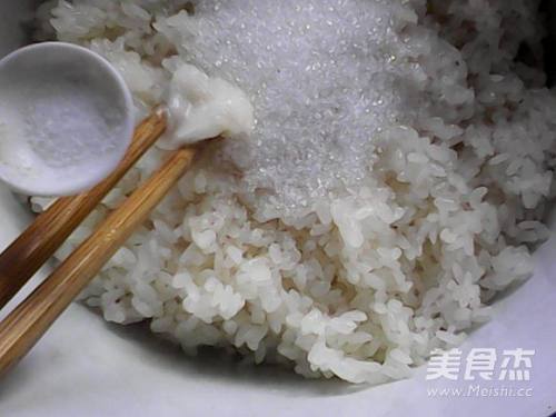 4蒸熟的糯米趁热放猪油,白糖,盐拌匀