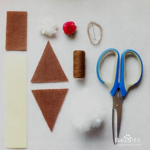 在不织布上裁剪好需要的形状,以及准备好的工具。