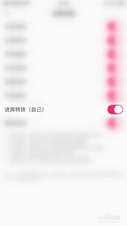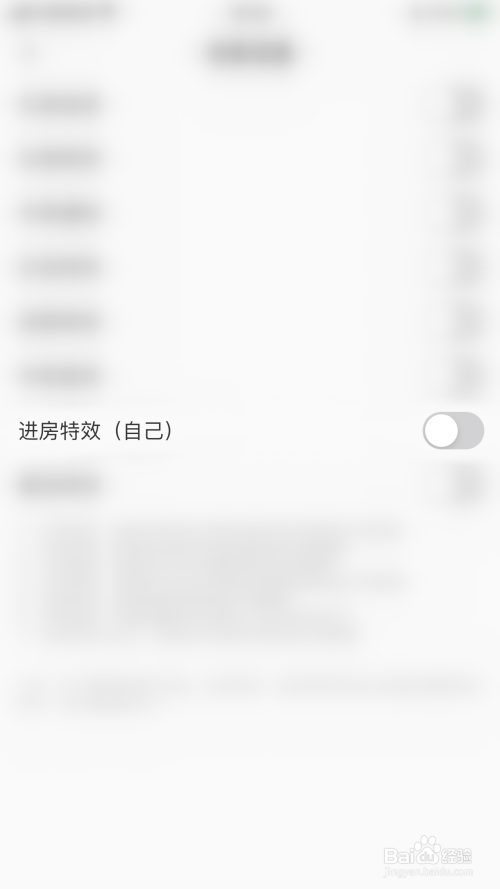 消息设置界面点击“进房特效(自已)”后面的圆点