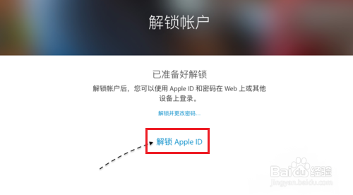 若是登录的 Apple ID 此时存在异常被锁定的话,如图所示。此时可以通过点击页面中的“解锁帐户”进入下一步操作;