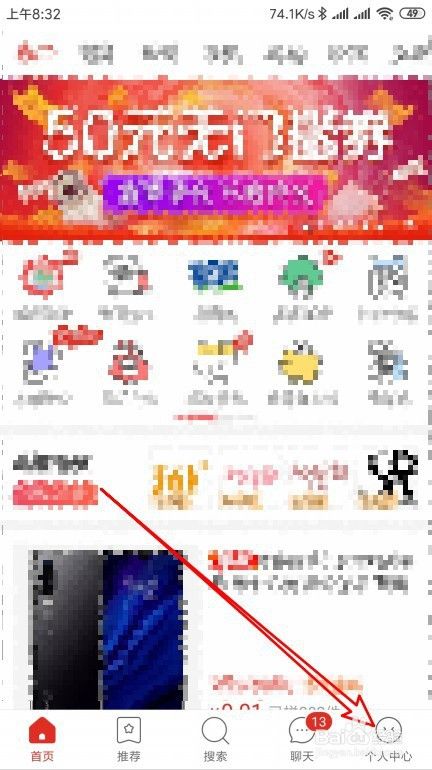 在打开的个人中心页面中,我们点击商品收藏的图标。