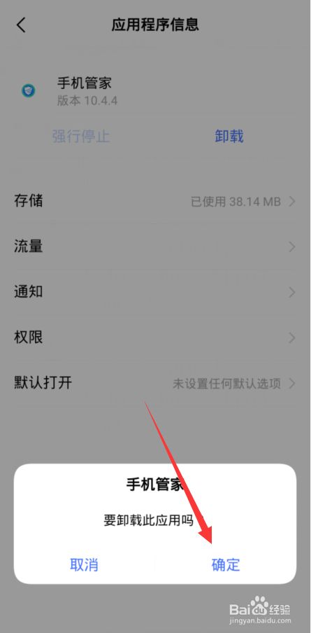点击卸载,并点击确定卸载,手机管家软件就删除了