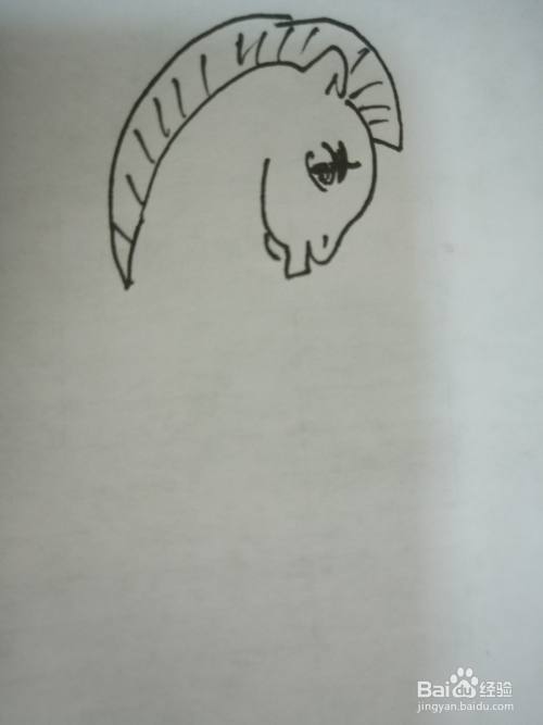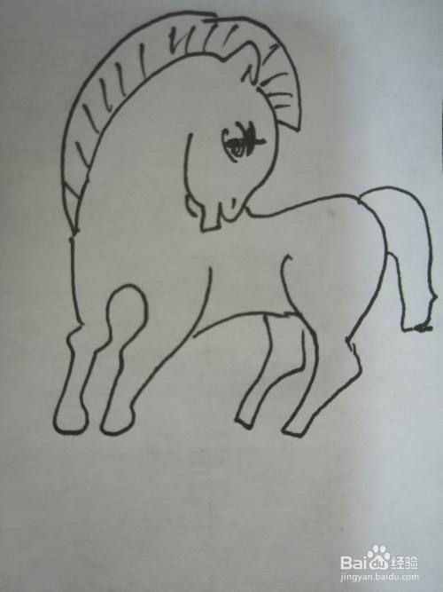 第七步,最后把简笔画可爱的小马的小尾巴画出来。简笔画可爱的小马就画好了。