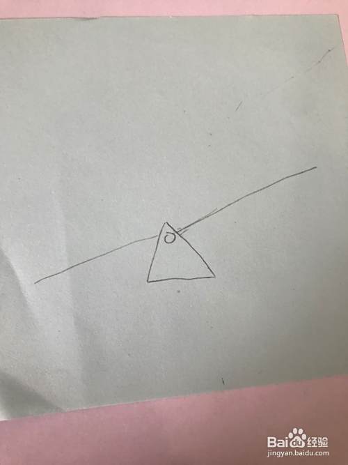 在三角形的左侧画一斜线,右侧也接着画一个朝上斜点的斜线。要保持同一斜线。