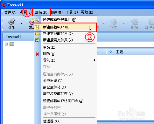 打开 Foxmail,点击“邮箱”菜单中的“新建邮箱帐户”