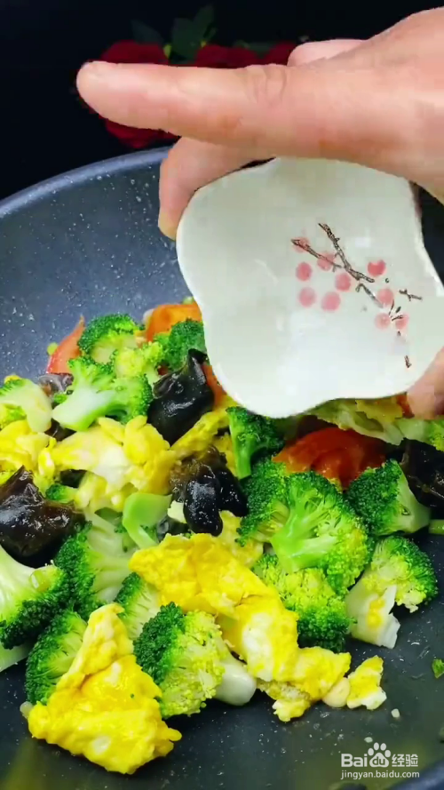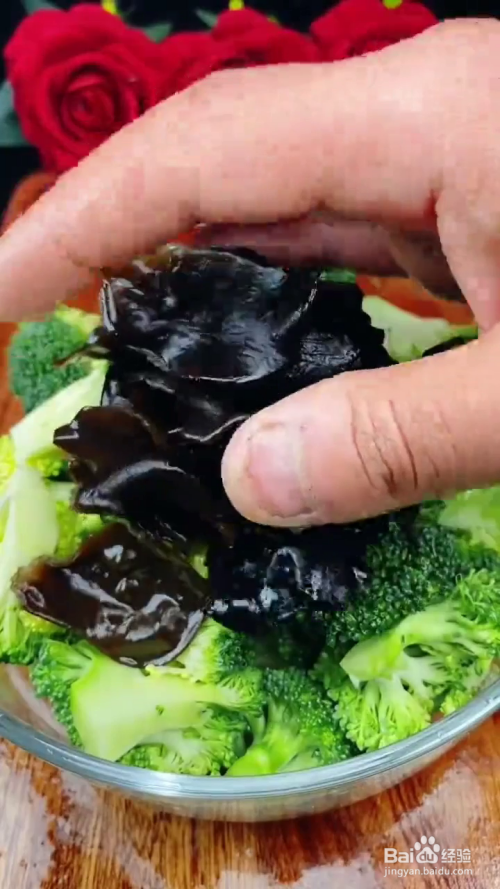 我们将食材洗净,木耳提前泡发,西兰花改小朵,鸡蛋打散备用,锅中烧水,水开放入盐,西兰花和木耳