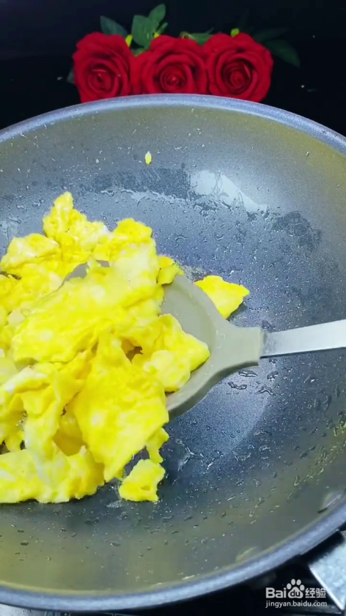 煮熟后捞出控水备用,锅中烧油,油热放入鸡蛋液,炒熟炒散后盛出备用,锅中再烧油,油热放入葱蒜爆香