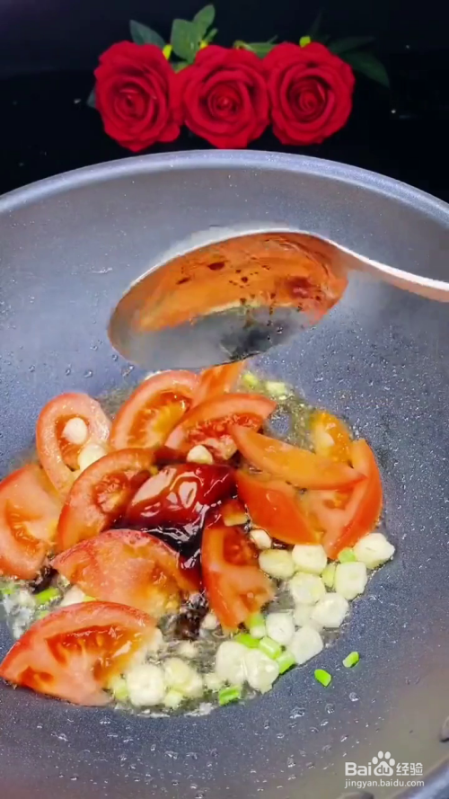 先放入西红柿,蚝油,生抽炒出香味,炒至番茄出汁,再放入所有食材,加入盐,鸡粉,白糖