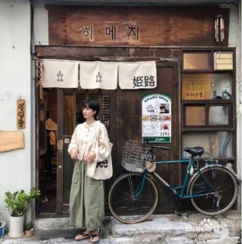 这一套看起来很复古,上衣淡色衬衫和白色帆布包,颜色一致很好搭配。裤子是超宽松的复古灯笼裤,爸爸那个年代很流行这种裤子,而且军绿色更加显得复古。鞋子是一双人字拖,休闲又好看。