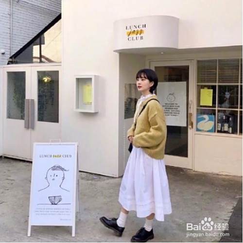 这一套是很淑女的穿搭,白色连衣裙是夏天款,夏天可以单穿,有气质又清纯。到了春秋季,天气渐冷就可在外面加一件圆领毛衣,或者穿一件针织开衫,都是非常好看的搭配。这一套就是在白色连衣裙外面加一件鹅黄色毛衣,颜色活泼又鲜艳,是符合少女人设的颜色首选了。